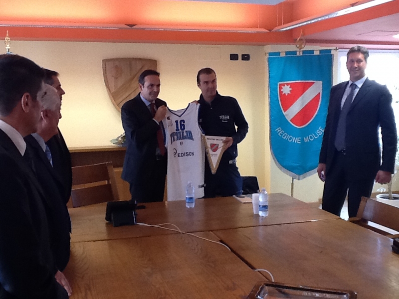 Al termine dell’incontro, piccolo scambio di doni tra il governatore Frattura e il ct Pianigiani. Al commissario tecnico è stato regalato un gagliardetto della Regione Molise, al presidente una maglietta della Nazionale di pallacanestro.