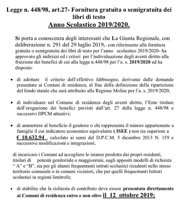 Il requisito principale che ogni genitore o chi rappresenta il minore deve avere, per ottenere il beneficio previsto è un Isee non superiore a 10.632,94 euro. Chi supera questa soglia dovrà comprare a sue spese i libri per i minori di cui ha la responsabilità.