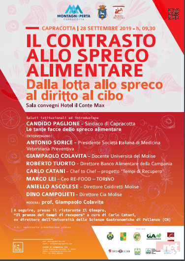 Dopo gli eventi del 9 e 17 agosto con le presentazioni letterarie di Pier Paolo Giannubilo e Gianluca Purgatorio, il focus del 6 e 7 settembre 2019, la giornata conclusiva sarà il 28 settembre quando diversi esperti del settore dialogheranno in merito alle azioni contro lo spreco alimentare.