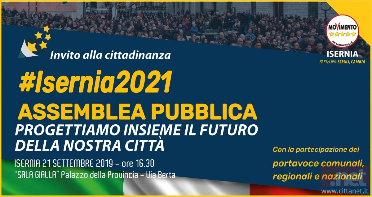Il MoVimento 5 Stelle Isernia organizza e promuove il primo incontro programmatico in vista delle elezioni amministrative del 2021: una assemblea pubblica che si terrà sabato 21 settembre ore 16:30 presso la "Sala Gialla" del Palazzo della Provincia, in via Giovanni Berta 189 ad Isernia.