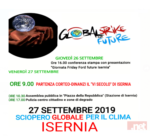 Ore 16:00 Conferenza stampa presso Ex Lavatoio di Isernia con presentazione "Giornata Friday For Future Isernia"