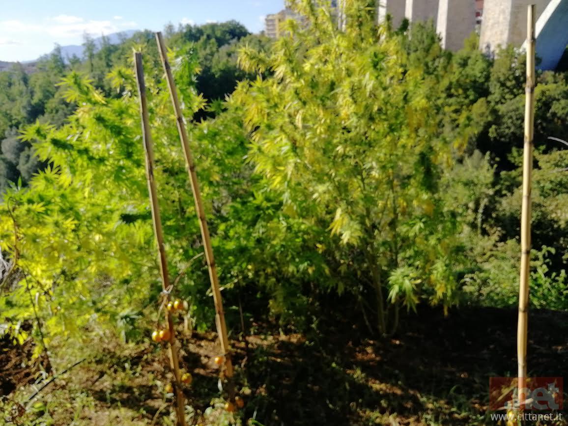 L’attività info-investigativa svolta dai militari operanti è culminata con l’individuazione di una piantagione di “Marijuana” situata nel terreno in cui insiste l’abitazione del predetto e nei locali pertinenti. Sono staterinvenute complessivamente  5 piante di canapa indiana in “infiorescenza” dell’altezza di.2 metri circa, con annesso impianto irriguo del tipo “a goccia”, necessario per la crescita delle stesse; mentre nell’abitazione sono state rinvenute ulteriori nr.5piante delle stesse dimensioni, già essiccate, per un peso complessivo di 2 kg circa. Queste ultime già pronte per ricavarne il prodotto e quindi suddividerle in dosi.
