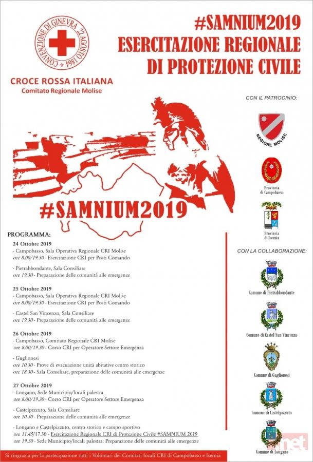 Si invitano gli organi di informazione a prendere parte alla conferenza stampa di presentazione dell’iniziativa informativa e addestrativa di Protezione Civile dal titolo “Samnium 2019”, organizzata dal Comitato Regionale del Molise della Croce Rossa Italiana e che si svolgerà a partire dal prossimo 24 fino al 27 ottobre 2019. Una quattro giorni che, oltre al Comitato Regionale, coinvolgerà anche i Comitati locali di Campobasso e Isernia, il Corpo Militare Volontario CRI, i Volontari Componente Civile, i Dipendenti Cri, le Strutture Nazionali di Protezione Civile, la Regione Molise, entrambe le provincie, cinque Comuni direttamente coinvolti con la popolazione e altri dieci inseriti nell'esercitazione.