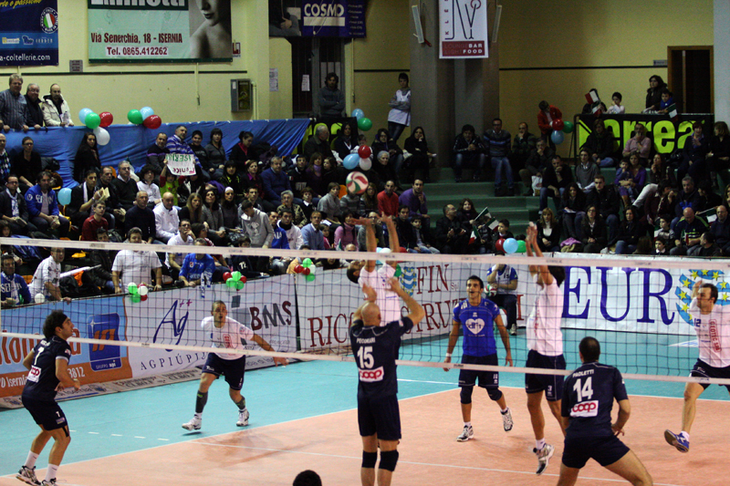 Isernia così è chiamata a cambiar marcia. Nel terzo set le squadre si inseguono punto su punto. E' 7-8 per gli ospiti al primo time out tecnico. Poi Sabbi e compagni riescono ad invertire il risultato portandosi in vantaggio all'arrivo a sedici. Un muro di Paoletti su Sabbi, un attacco vincente di Mercorio e un primo tempo di Di Franco segnano il recupero della Carige arrivata a –2. E' Fiore a dare l'avvio ad un brillante finale di set, che vede Westphal andare a segno in occasione degli ultimi 3 punti (25-20).