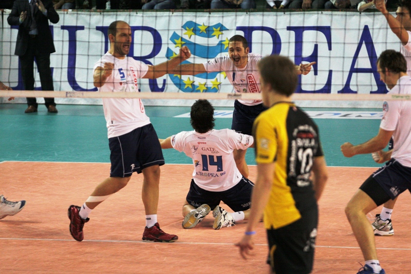 A quel punto, il tecnico ospite Bonitta prova a rimescolare le carte in tavola, inserendo in regia Bonetti per Garnica. Ma i bianco azzurri vogliono chiudere i conti: subito un missile del martello tedesco Westphal, poi un muro vincente di Giosa, seguito a ruota da Sabbi siglano un parziale di 4-0 per la Geotec. Continua a macinare punti il sestetto allenato da Cannestracci, la cui cavalcata vincente passa dall’8-4, quindi al 16-10 e infine al 21-18. La conclusione del match è affidata alle mani del giovane opposto mantovano Nicola Puhar.