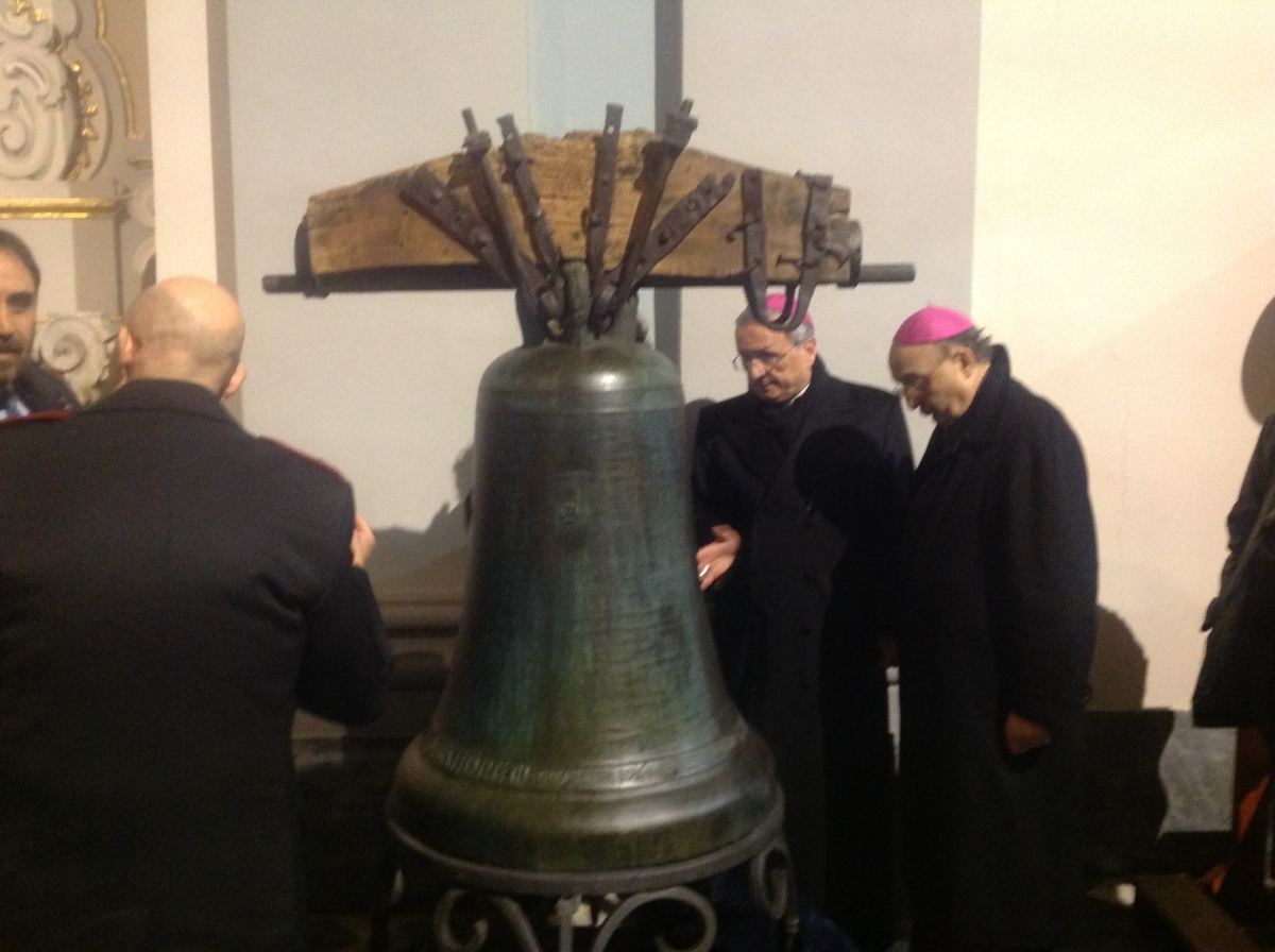 Un evento straordinario di intervento sul territorio e per il territorio quello del Rotary Club di Isernia che, in collaborazione con il Rotary Club di Agnone e l’Antica Fonderia Marinelli, ha reso possibile la restituzione alla città di Isernia dell’antica campana della Chiesa di San Francesco. La leggenda vuole che questa campana, risalente all’anno 1259, sia stata posizionata nella Chiesa per celebrare il Passaggio ad Isernia proprio del Santo di Assisi che, in quell’occasione, avrebbe incontrato Celestino V appena eletto Papa. Lesionata gravemente durante il terremoto del 1805 e, da allora mai più funzionante, finalmente è tornata alla presenza di tanti fedeli, cittadini e autorità . Un convegno in cui sono interventi, oltre la Presidentessa del Rotary Club Isernia Dr.ssa Emilia Vitullo e il SIndaco D'Apollonio, Mons. Claudio Palumbo, vicario Del Vescovo della Diocesi di Isernia/ Venafro che ha tenuto relazione sulla fede nel periodo del 1200. Lo storico Fernando Cefalogli ha esposto, poi, la storia della campana, annoverata tra le più antiche d’Italia. " la storia della campana di Isernia di cui abbiamo sempre parlato ora la vediamo restaurata e fruibile al pubblico. La visita di San Francesco ad Isernia, come narra la tradizione, ha visto testimonianze del suo passaggio e della sua presenza nella nostra terra. Dopo i danni subiti dai diversi terremoti anche la campana fu seriamente lesionata e, ricollocata al suo posto, mai più suonata. Dobbiamo ritenere una vera fortuna aver conservato per 8 secoli la campana e adesso la comunità isernina gli assegna il giusto e meritato riconoscimento e collocamento". Armando Marinelli, titolare dell’omonima Fonderia Pontificia, emozionato, ha descritto l’arte campanaria del ‘200 e del restauro della campana di San Francesco, " ringrazio tutti voi per la possibilità datami di esprimere l'orgoglio che provo per il restauro. Una campana lesionata non è più utilizzabile ma per noi una sfida nel rivederla a nuova vita almeno dal punto di vista strutturale perché le campane non si possono saldare e una volta rotte non suonano più. È stato così per la campana di San Francesco. Le escursioni termiche l'avrebbero rovinata ancor di più. L'abbiamo prelevata dal campanile e abbiamo lavorato per poterla ridare alla città di Isernia. Quando saliamo sui campanili non sappiamo mai di fronte a che patrimonio storico ci troviamo, di che anno sono e che particolare tipo di intervento devono subire. In questo caso una campana del 1259. Un'emozione fortissima, un impegno serio, e decidemmo che questa campana doveva diventare il simbolo della città che difende il suo inestimabile patrimonio. Un sogno che si è avverato, il nostro restauro e stato fatto con amore, dedizione e rispetto per la storia della campana e per la città ". La Vitullo, “Ringrazio tutti, un evento di straordinaria importanza simbolica e culturale di cui siamo lieti di essere stati i promotori, assieme al Rotary Club di Agnone, che restituisce alla nostra città un vero e proprio gioiello. La campana pur non suonando più e' presente tra noi e ne siamo orgogliosi. Un evento che non sarebbe mai stato possibile senza la preziosa collaborazione della Pontificia Fonderia Marinelli, che ha restaurato gratuitamente la campana, e del Comando Provinciale di Vigili del Fuoco che l’ha recuperata dall’alto del campanile. Un sentito ringraziamento va anche alla Curia Vescovile ed alla Soprintendenza Archeologia, Belle Arti e Paesaggio del Molise che hanno reso la realizzazione del restauro. Siamo orgogliosi dell’attività svolta da tutti noi, a dimostrazione del fatto che un lavoro sinergico, la buona volontà , il desiderio di impegnarsi per la propria comunità riescono a farci raggiungere obiettivi ambiziosi che donano lustro all’intera comunità ". Nella preziosa Chiesa di San Francesco interessanti aneddoti attorno alla storia della nostra campana che è stata benedetta da parte del Vescovo di Isernia, SE Mon. Camillo Cibotti. Presente anche l'Arcivescovo di Gaeta, Bernardo d'Onorio, in passato Abate di Montecassino .